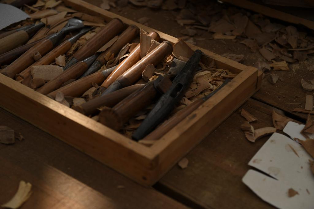 11月22日在浙江临海汇溪镇浚头村拍摄的当地工匠的工具。