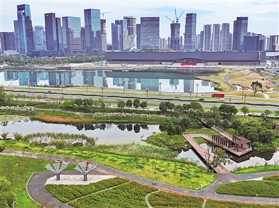 2024全球熊猫伙伴大会举办地——成都天府国际会议中心所在的四川天府新区秦皇寺中央商务区。新华社记者 刘坤 摄