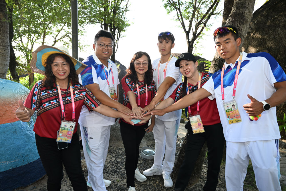 ↑台湾少数民族代表团和云南代表团成员在活动现场合影。新华社记者 周牧 摄