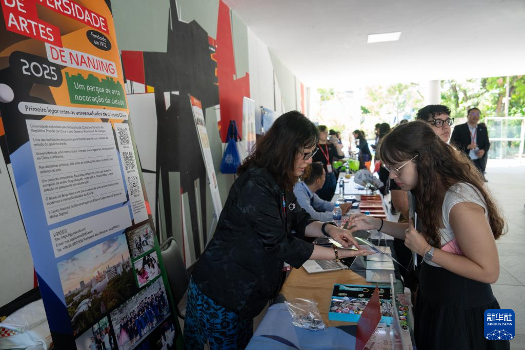 11月25日,人们在巴西里约热内卢联邦大学举办的中国高等教育展上参观。新华社记者 王天聪 摄