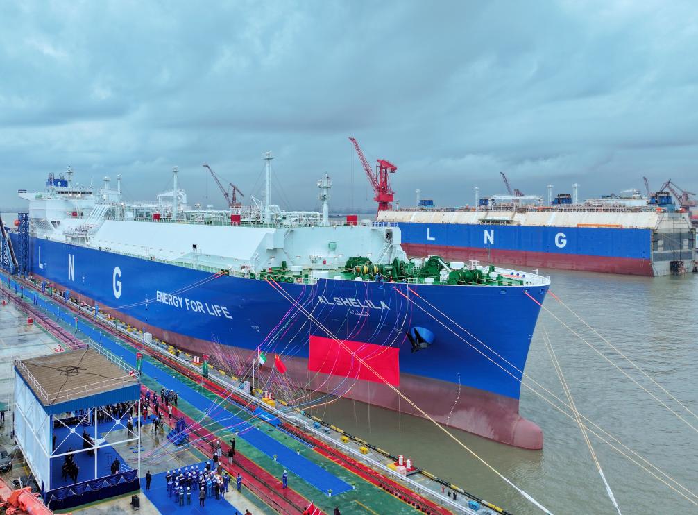 25日,国产首艘大型MarkⅢ Flex薄膜式LNG船“AL SHELILA”在江南造船(集团)有限公司命名交付。