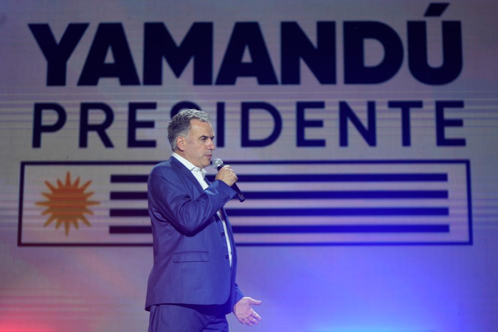 11月24日,乌拉圭主要反对党联盟广泛阵线总统候选人亚曼杜·奥尔西在位于首都蒙得维的亚的竞选总部发表胜选演讲。新华社发(尼古拉斯·塞拉亚摄)