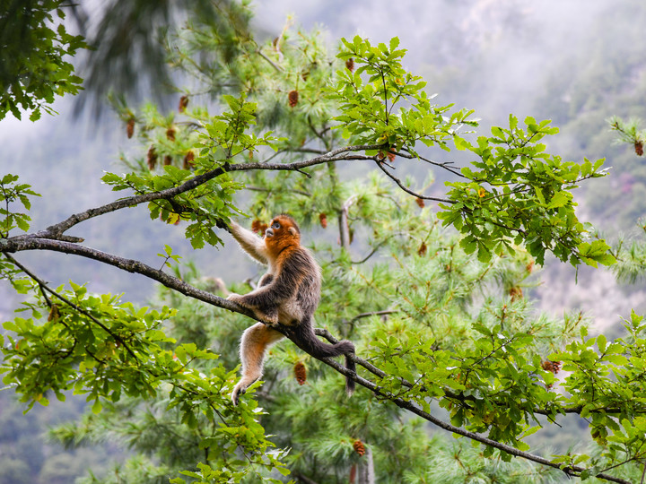 10月11日在四川白河国家级自然保护区里拍摄的川金丝猴。新华社记者 王曦 摄