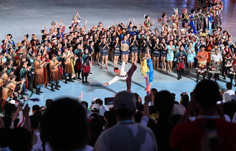 “在赛事之外,能有这样盛大的民族大联欢活动,让我们看到56个民族各自的文化,并且能有机会互相交流认识,是非常棒的体验。”澳门代表团表演项目运动员黄梓轩说。他之前只在课本上了解过56个民族,如今亲眼看到,非常震撼。作为澳门大学一名传统文化艺术领域的教师,他拍了许多照片,打算回去和同学们分享。