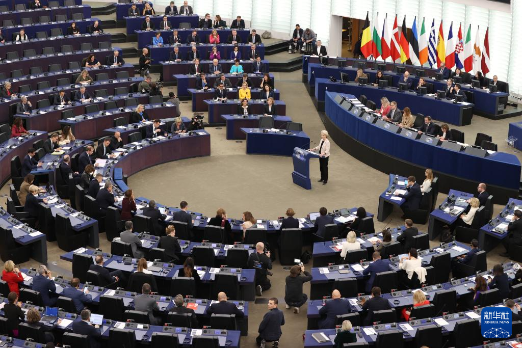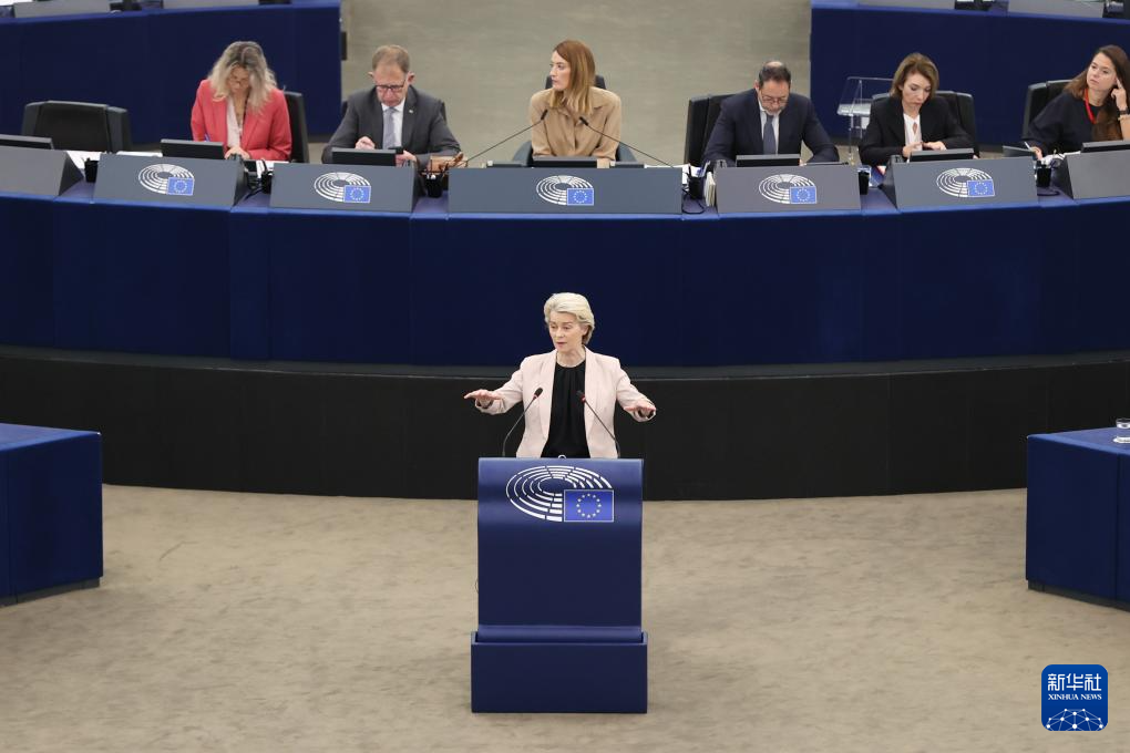 11月27日,在法国斯特拉斯堡,冯德莱恩在欧洲议会会议上讲话。新华社记者 赵丁喆 摄