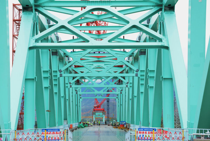 2024年9月5日,工人在川青铁路重点工程尖扎黄河特大桥现场施工。川青铁路是我国“八纵八横”高速铁路纵向主通道兰(西)广通道的重要组成部分。新华社记者 王浡 摄