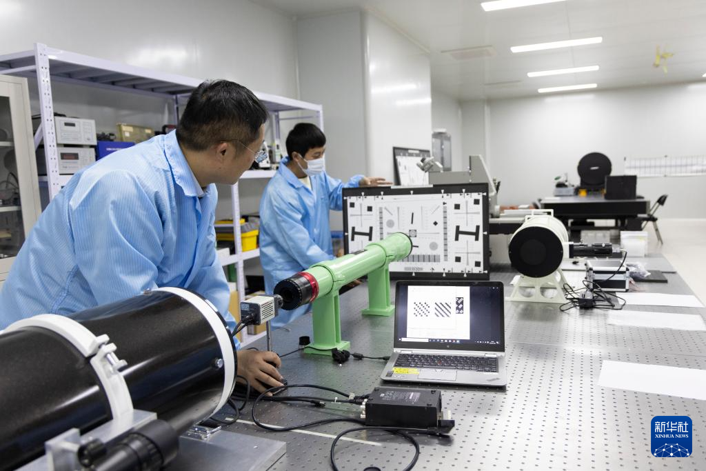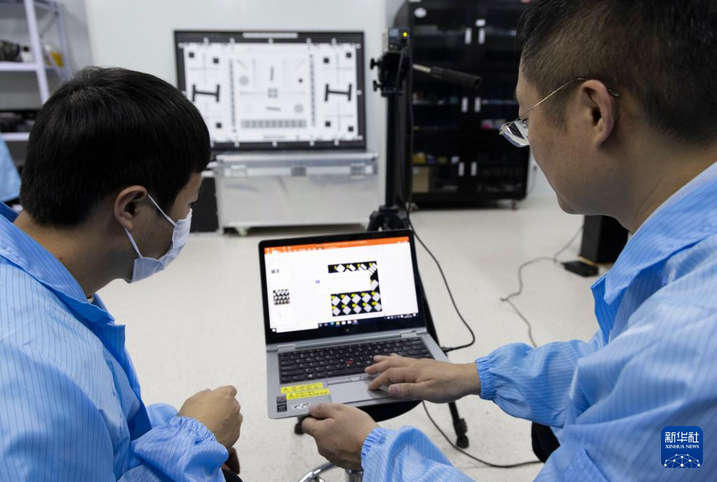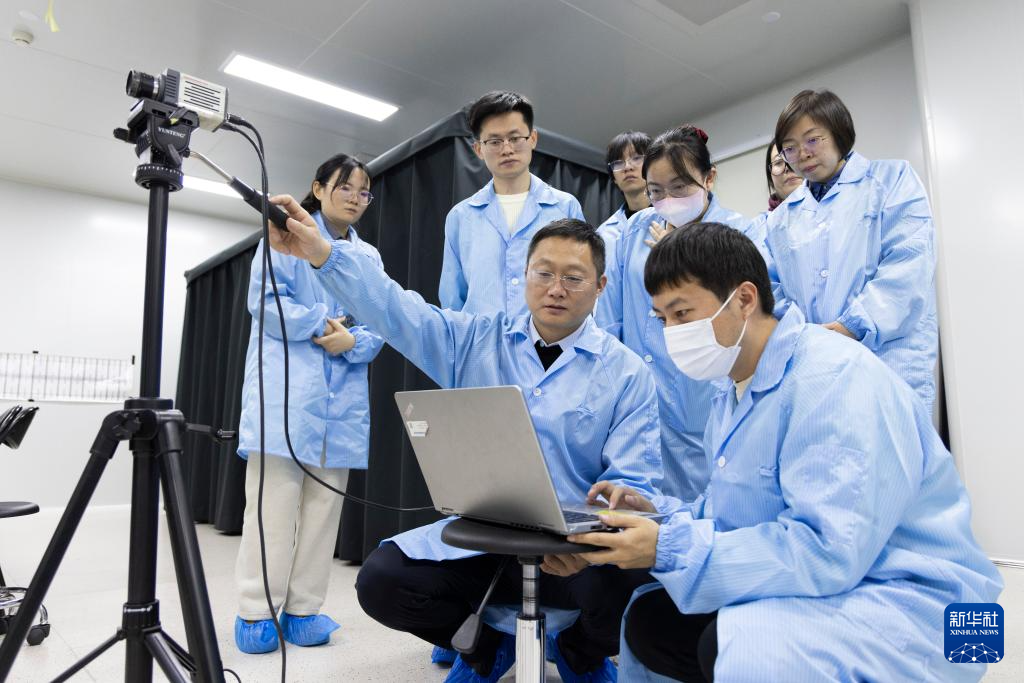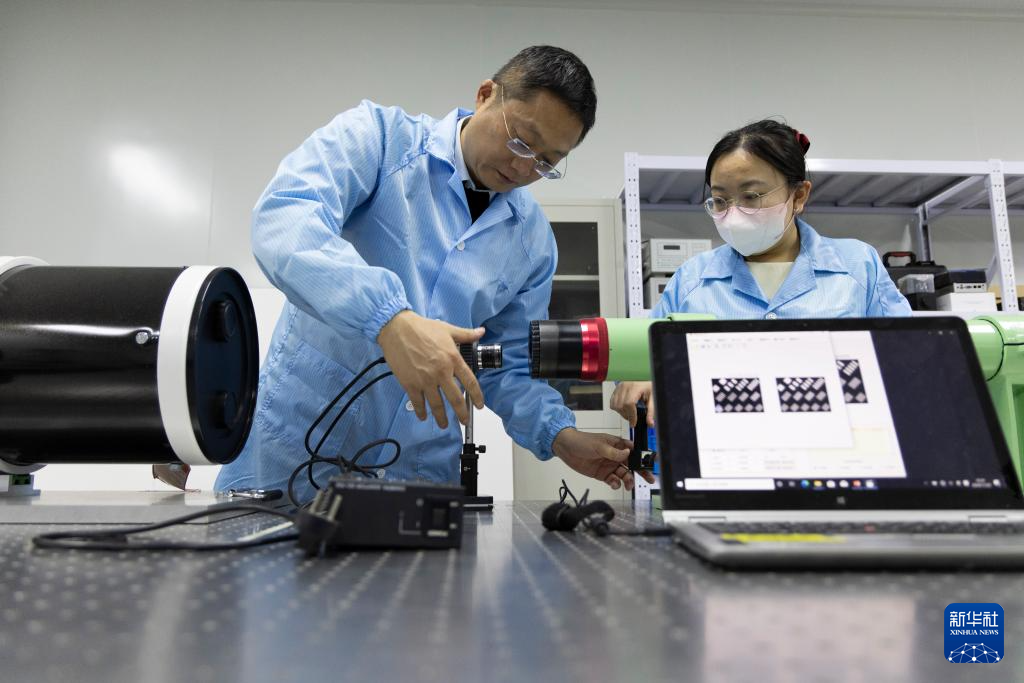 11月27日,在中国科学院空天信息创新研究院实验室,张泽研究员(左)和团队成员在标校数字图像传感器。新华社记者 金立旺 摄pagebreak