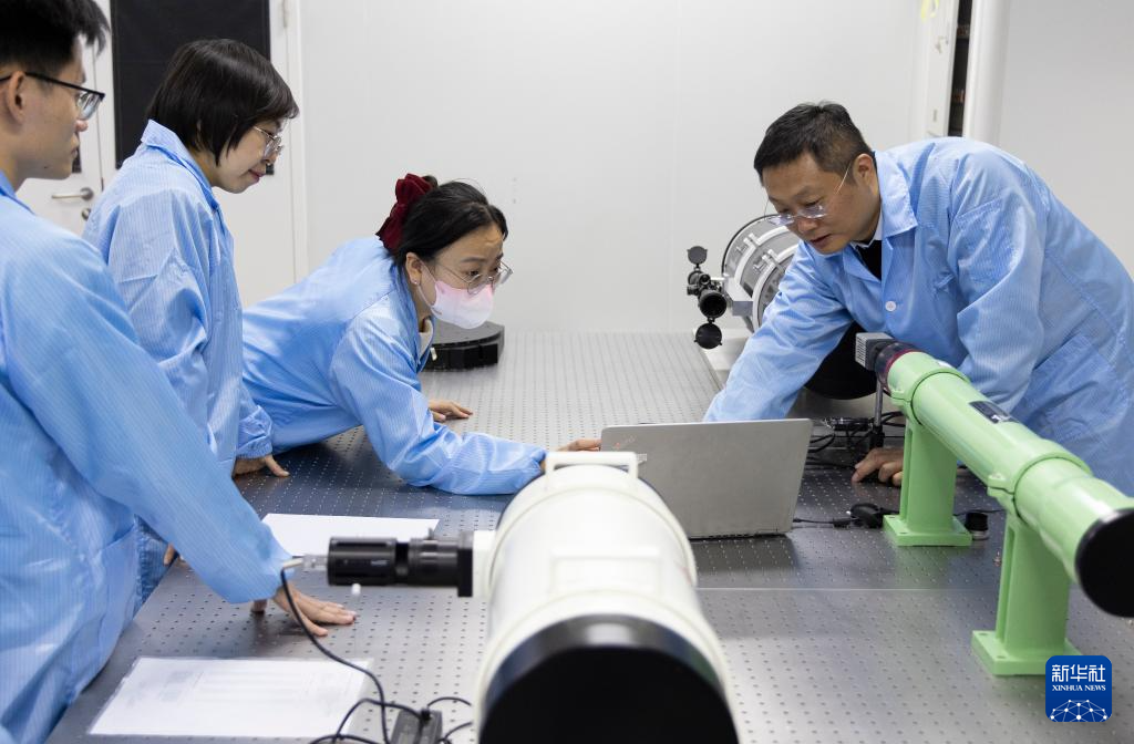 11月27日,在中国科学院空天信息创新研究院实验室,张泽研究员(左)和团队成员在调试实验设备。新华社记者 金立旺 摄pagebreak