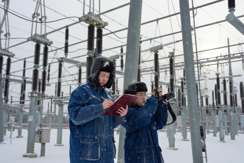 11月26日,国网黑龙江电力伊春供电公司员工对变电站进行测温。新华社发