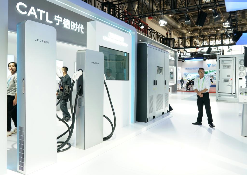 这是11月26日在第二届中国国际供应链促进博览会智能汽车链展区拍摄的宁德时代展位上展出的超充解决方案。新华社记者 张晨霖 摄