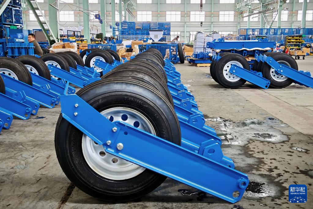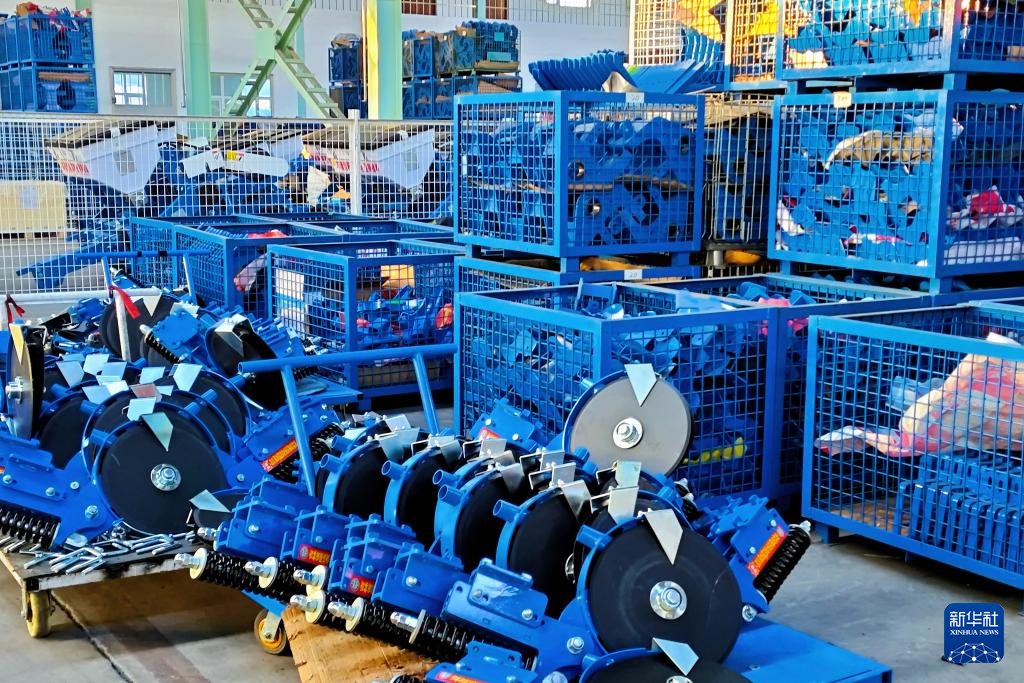 这是11月18日在吉林省四平市拍摄的吉林省康达农业机械有限公司生产车间内的免耕播种机零部件。新华社记者 胡戈 摄