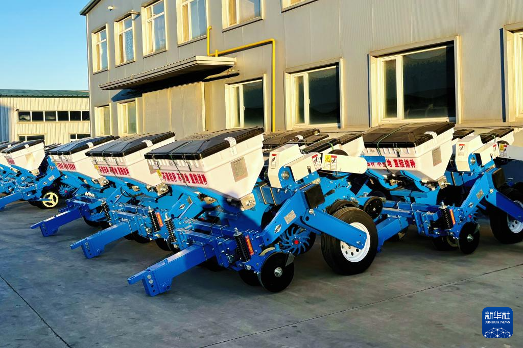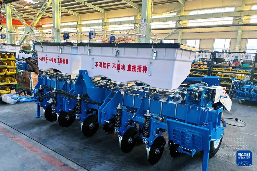 这是11月18日在吉林省四平市拍摄的吉林省康达农业机械有限公司生产车间外的免耕播种机。新华社记者 胡戈 摄