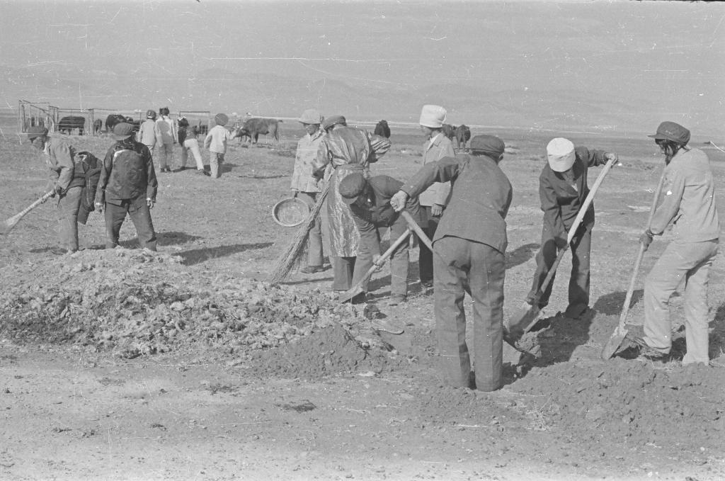 20世纪50年代,群众在香日德开垦农田(资料照片)。新华社发