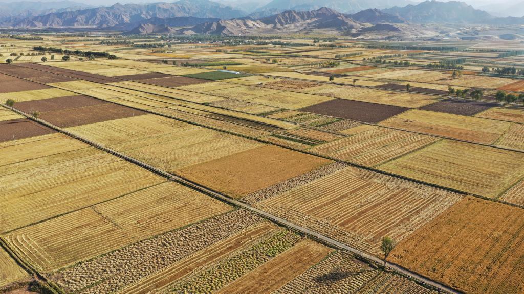 图为9月29日拍摄的香日德连绵的农田。新华社发(潘彬彬摄)