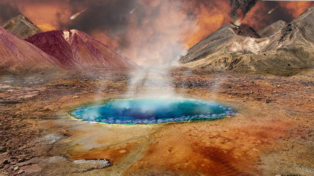 早期地球陆地热泉概念图 (亚历克斯·博索伊绘)
