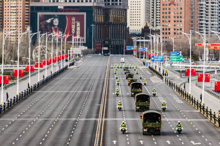 仪式结束后,志愿军烈士遗骸棺椁在48辆警用摩托组成的骑警车队护卫下,由6辆军用运输车送往沈阳抗美援朝烈士陵园。