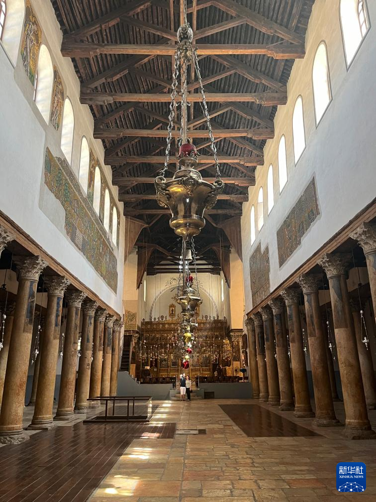 这是在约旦河西岸城市伯利恒拍摄的圣诞教堂内景(9月11日摄)。新华社记者 李军 摄