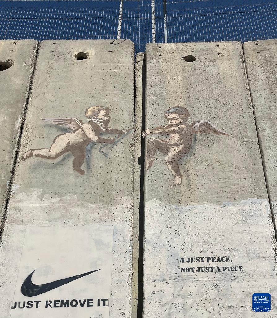 隔离墙上,密密麻麻满是涂鸦。来自巴勒斯坦和世界各地支持巴勒斯坦的艺术家们把这面隔离墙当作表达诉求的“大画板”。墙上的每一幅画作,都是对和平的呼唤和对战争的控诉,既有两个天使试图撬开隔离墙的画像,也有“要鹰嘴豆泥,不要隔离墙”以及“要正义的和平,而不只是和平”的呐喊。
