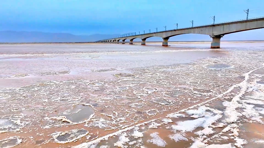 日前,内蒙古沿黄地区气温显著下降,受强冷空气过程影响,黄河内蒙古杭锦旗独贵塔拉段开始流凌,流凌密度10%左右。站在岸边眺望,宽阔的河面上漂浮着一个个犹如莲叶般的冰凌,大小各异的冰凌顺流而下,缓缓飘动,场面甚是壮观。