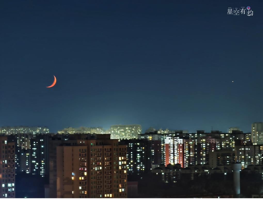 2024年11月5日在北京市丰台区拍摄的金星伴月。(王俊峰摄)
