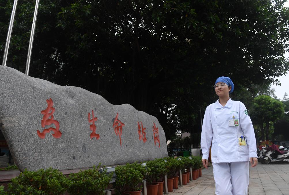 南宁市第四人民医院将“为生命站岗”几个大字刻在院里一块大石头上。每天,医护人员上下班都要从这块石头前走过,这几个大字是他们的职业誓言,也是他们救死扶伤的使命与担当。为此,他们无怨无悔无畏。