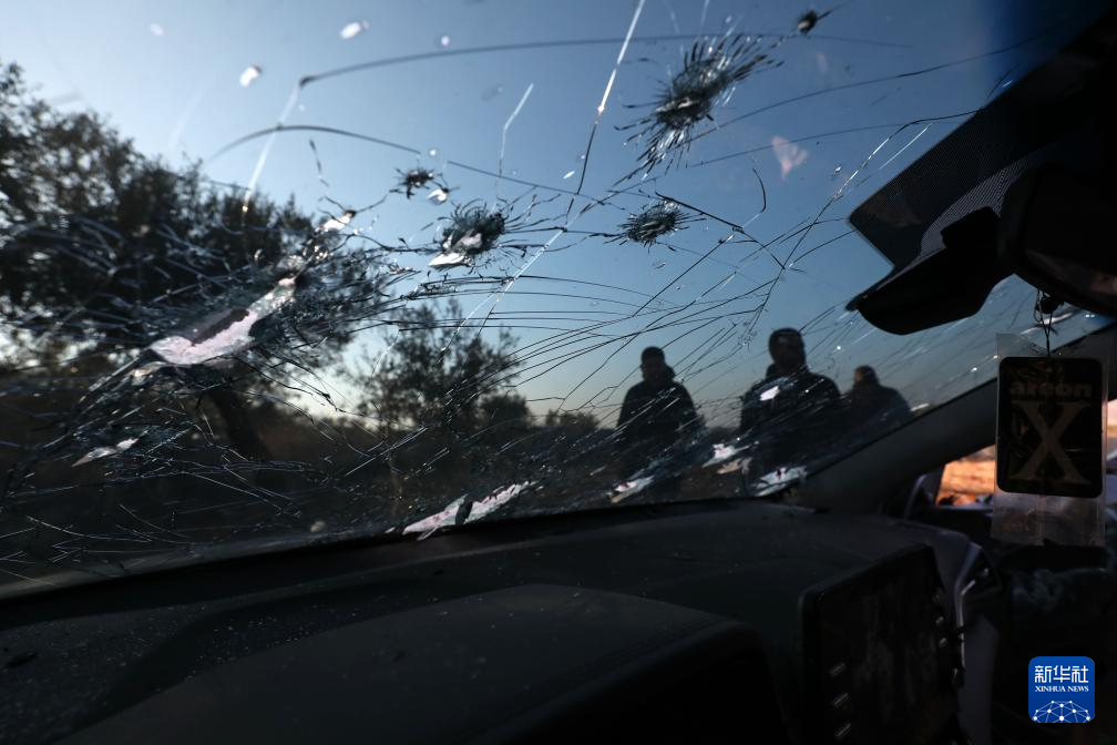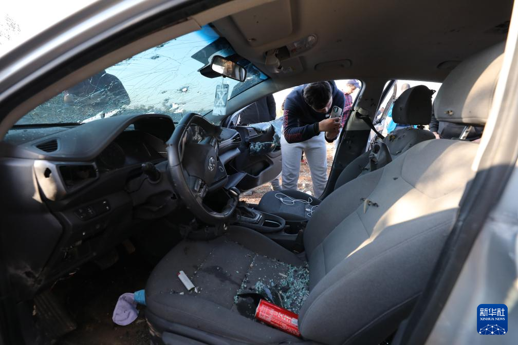 12月1日,在约旦河西岸北部杰宁地区的赛尔镇,当地民众查看在以军行动中被损毁的车辆。新华社发(尼达尔·艾仕塔耶摄)