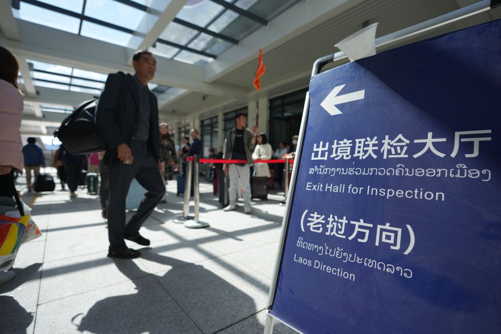 2024年12月3日,乘客在磨憨站准备换乘前往老挝。