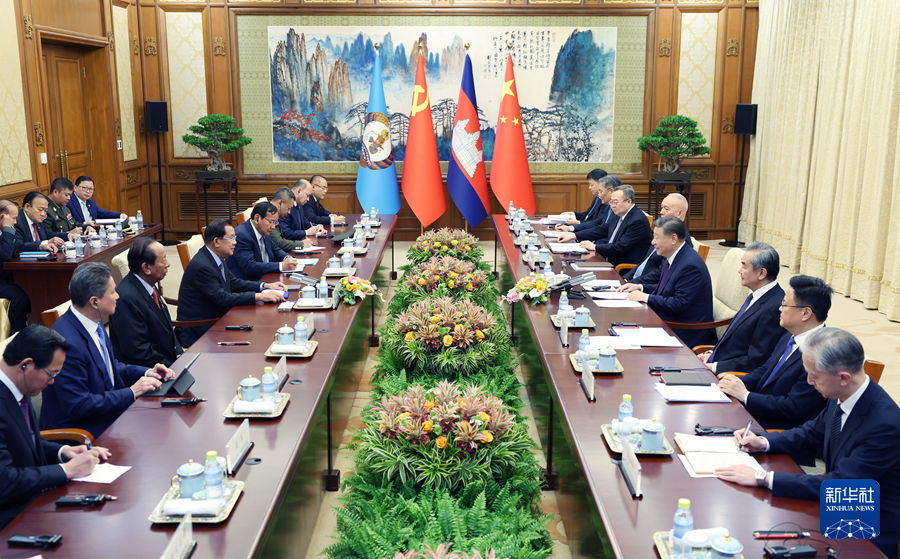 习近平指出,当前,国际形势变乱交织,全球性挑战层出不穷,考验着各国的应对和选择。中柬两国都致力于做世界的和平力量、发展力量、进步力量。中方将继续支持柬埔寨在国际和地区事务中发挥更大作用,壮大“全球南方”力量,支持东盟坚持战略自主,维护中心地位,坚决反对外部势力将冷战思维引入本地区,坚定不移推动东盟一体化和共同体建设。中方愿同柬方坚定道不改、志不变的决心,增强底线思维,加强协作和配合,共同应对各种风险。