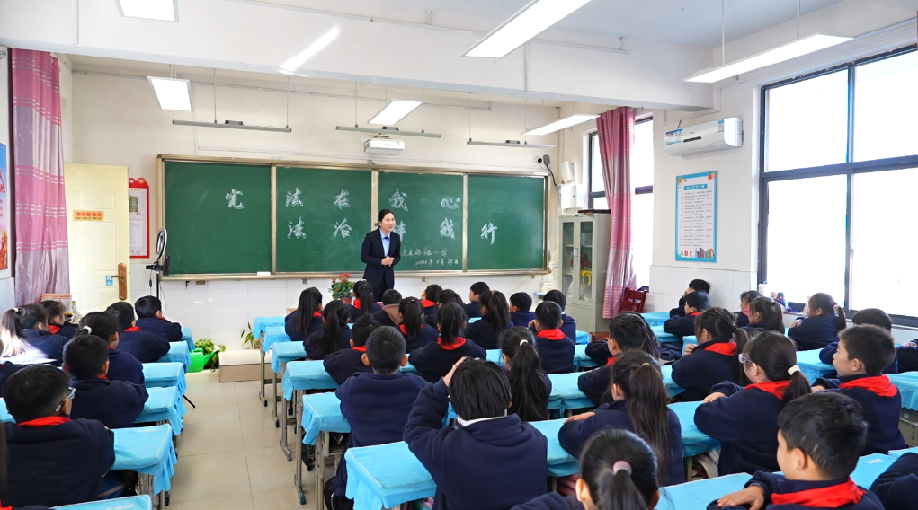 “什么是国家的根本法,具有最高的法律效力?请抢答……”12月4日,一场宪法知识竞赛正在河南省兰考县裕禄小学举行。