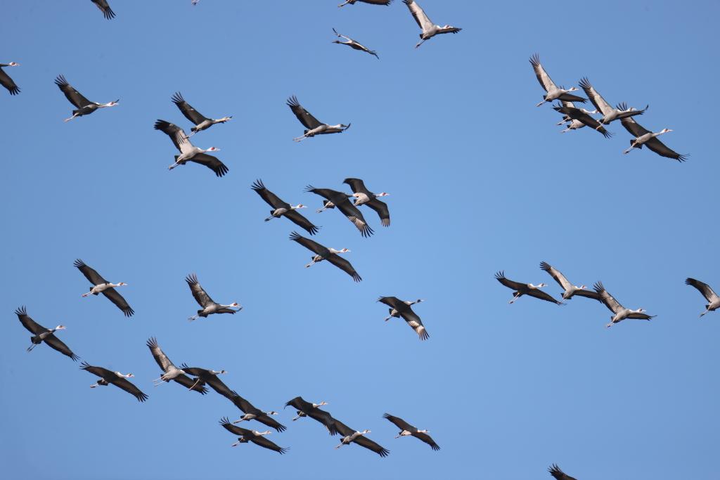 孟德荣表示,经过走访周边护鸟志愿者以及调查白枕鹤生活环境,这群白枕鹤到访已有一个多月的时间,它们聚集在海兴湿地停歇觅食。时下正是候鸟由北向南迁徙季,海兴湿地作为候鸟迁徙路线上的重要驿站,过境鸟类数量众多,一次迎来约470只白枕鹤,说明当地生态环境向好。