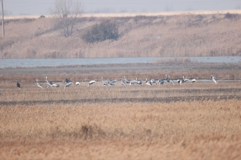 国家一级保护动物白枕鹤在海兴湿地和鸟类省级自然保护区停歇觅食。(受访者供图)