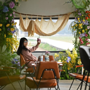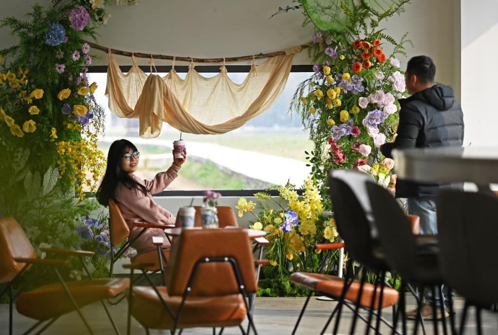 12月3日,游客在浙江省杭州市桐庐县梅蓉村的乡村会客厅宏逸咖啡馆拍照打卡。新华社记者 卢哲 摄