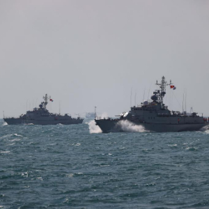 12月3日,在中越第37次北部湾联合巡逻中,越方联合巡逻舰艇编队快速机动。新华社发(佟佳峻 摄)
