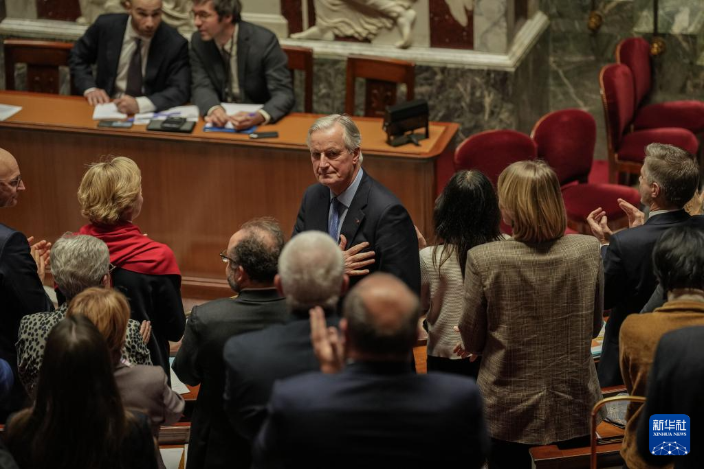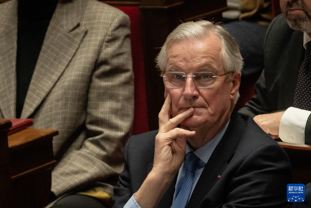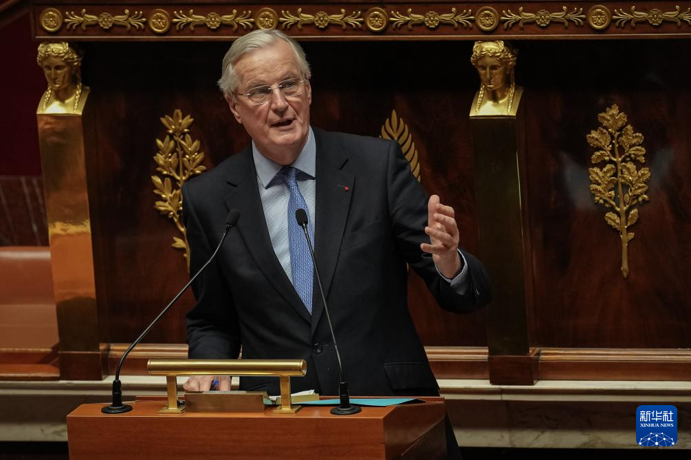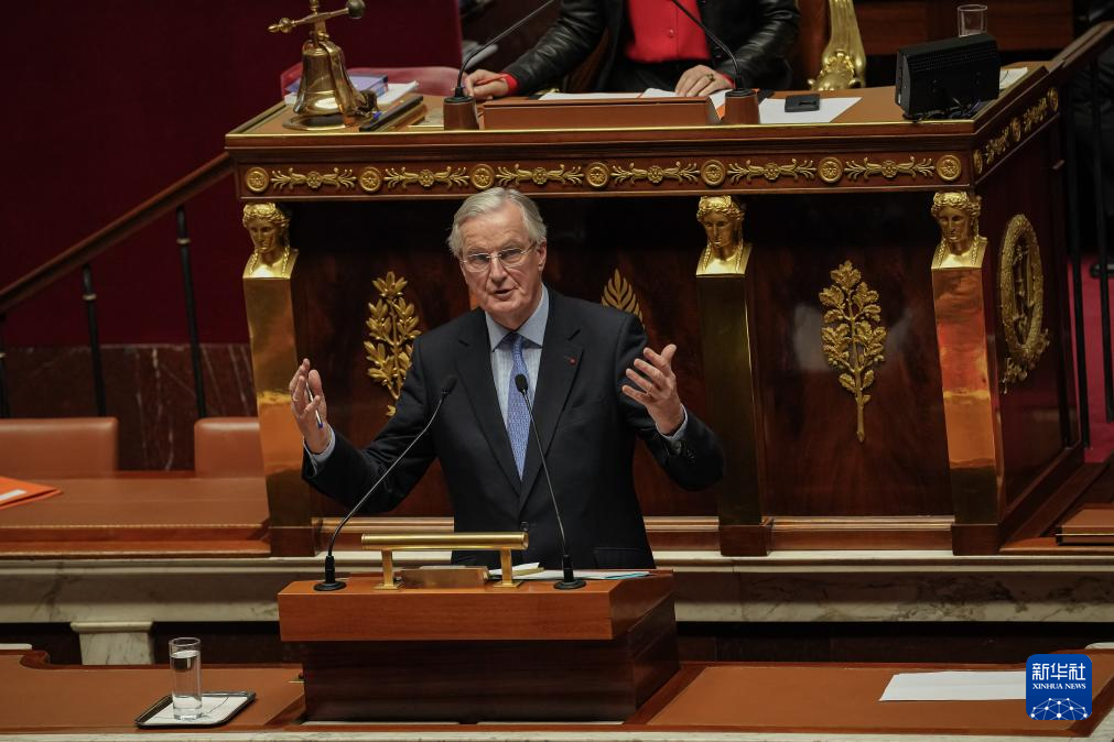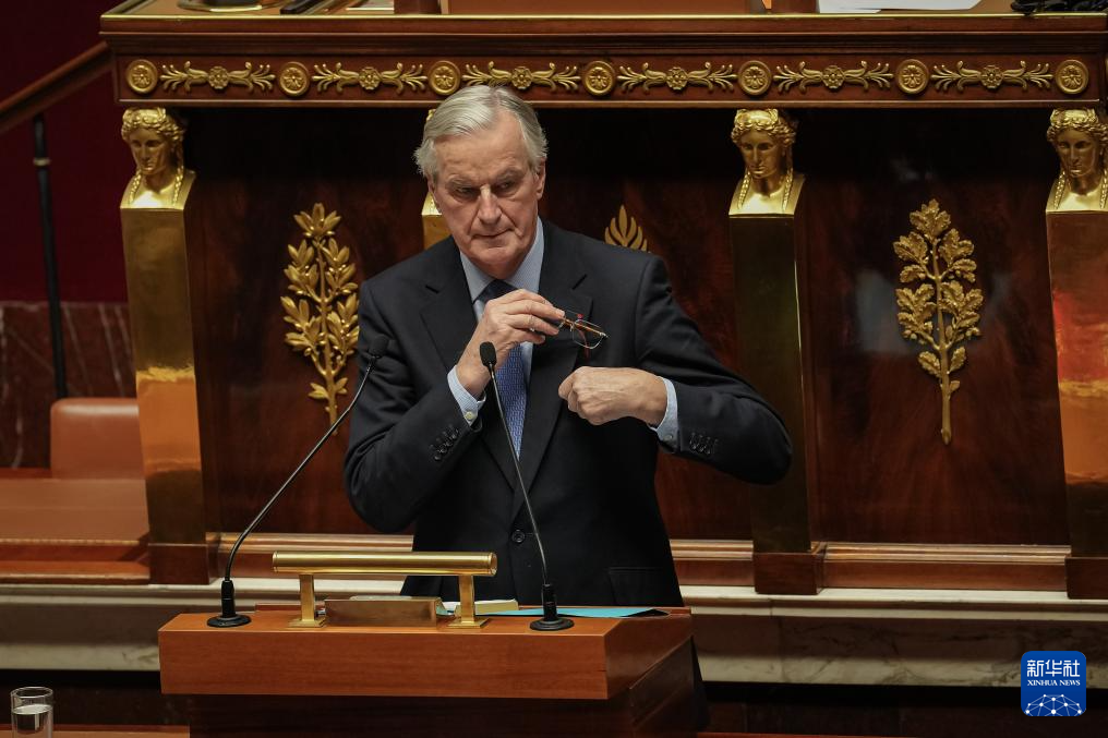 12月4日,在法国巴黎,法国总理巴尼耶在国民议会就对政府不信任动议投票表决前辩论上发言。新华社发(奥雷利安·莫里萨尔摄)