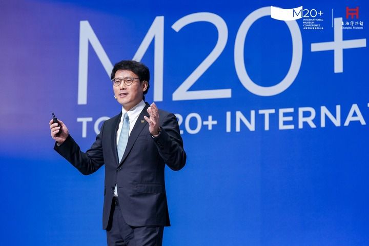 M20+全球顶尖博物馆大会开幕式上,上海博物馆馆长褚晓波以变与不变为题发表演讲。上海博物馆供图