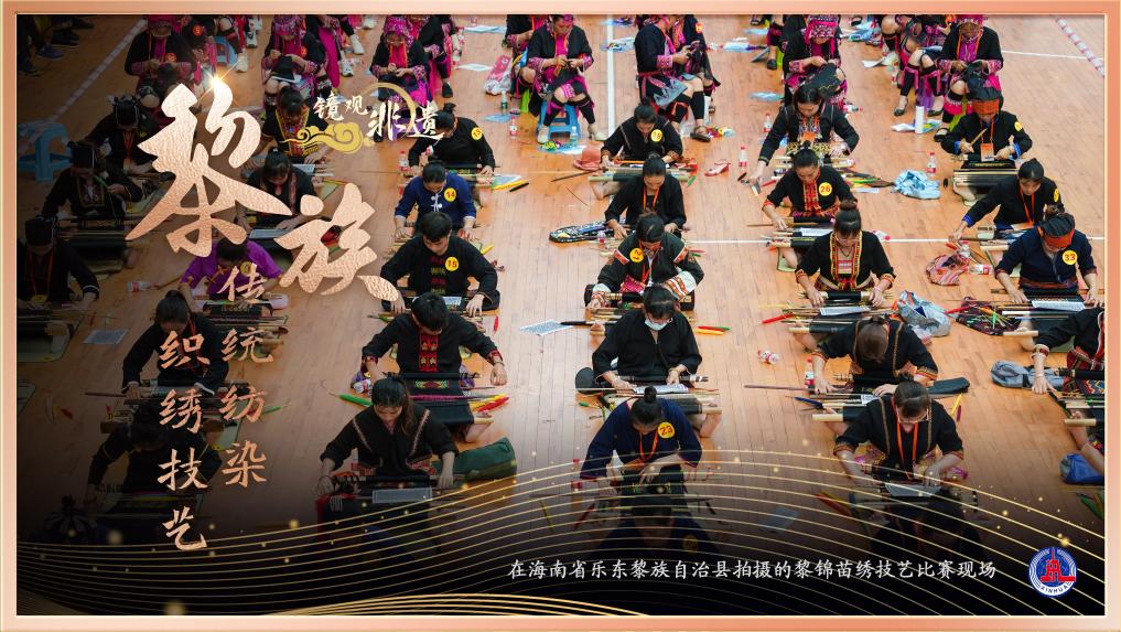 黎族传统纺染织绣技艺已有三千多年历史,被称作纺织业的“活化石”,是海南黎族人民在长期生活中创造出来的一种独特的织锦艺术。黎族传统纺染织绣技艺有麻织、棉织、织锦、印染(包括扎染)、刺绣、龙被等品种,以色彩鲜艳、图案多样、工艺精湛而闻名,古人赞美黎锦“光辉艳若云”。对于没有创造文字的黎族,黎锦更像是一本“史书”,写就了这个民族的文化和智慧。