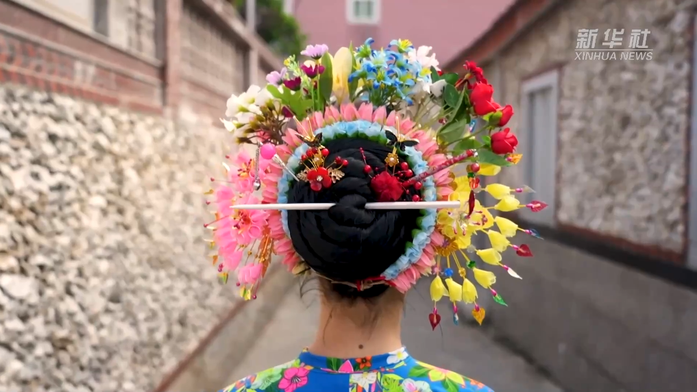 五彩缤纷的簪花承载着昔日渔家女的情感与希冀,也成为如今年轻人拍照打卡的“时尚单品”,吸引四方游客慕名前来体验。