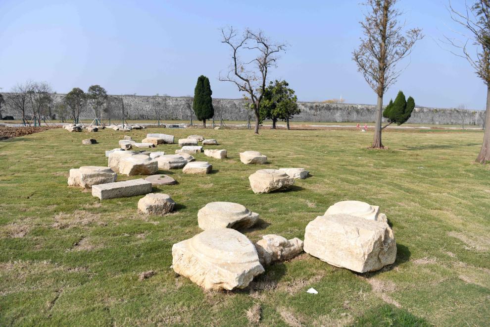 这是11月21日在安徽省滁州市凤阳县明中都皇故城国家考古遗址公园内拍摄的建筑构件。新华社记者 刘军喜 摄