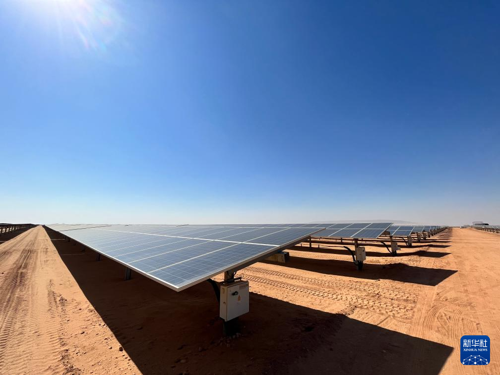 这是11月24日在埃及南部阿斯旺省的沙漠中拍摄的本班光伏产业园内的光伏板。新华社记者 隋先凯 摄