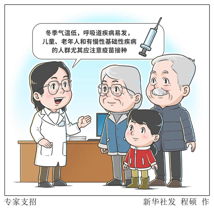 “一老一小”的健康备受关注。中国疾病预防控制中心研究员彭质斌特别提醒,儿童免疫系统还不健全,老年人通常免疫功能相对较弱,在保持良好的个人卫生习惯、注重环境清洁卫生等基础上,还需尽早做好疫苗接种。呼吸道传染病高发季节,儿童、老年人应尽量避免前往环境密闭、人员密集场所,一旦出现病症,要及时就诊,遵照医嘱进行治疗。