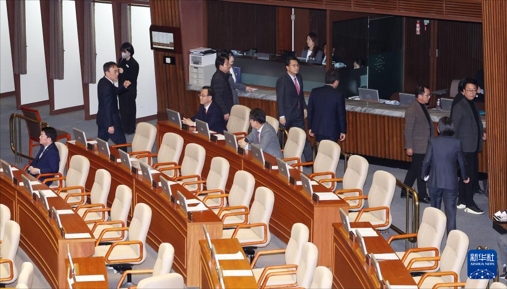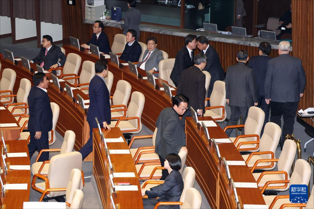 12月7日,在韩国首尔,韩国执政党议员在涉总统夫人的“金建希特检法”投票结束后陆续退场,不参加弹劾尹锡悦动议案的国会投票。新华社发