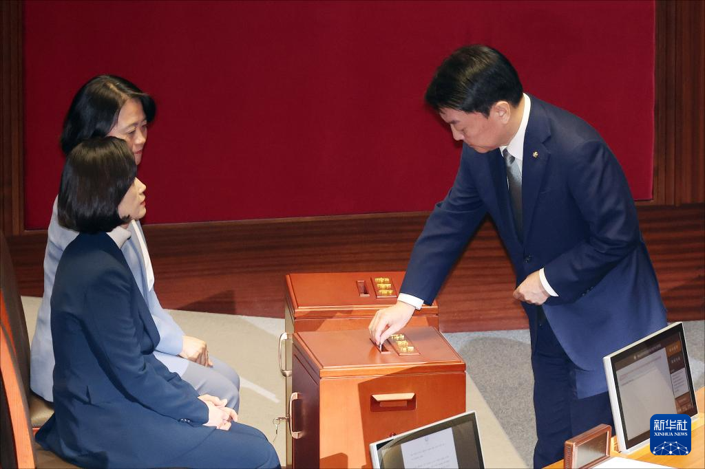 12月7日,在韩国首尔,韩国国会议员就弹劾总统尹锡悦动议案进行投票。新华社发