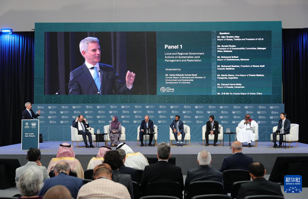 这是12月6日在沙特阿拉伯利雅得拍摄的《联合国防治荒漠化公约》第十六次缔约方大会(COP16)市长论坛现场。新华社记者 王东震 摄