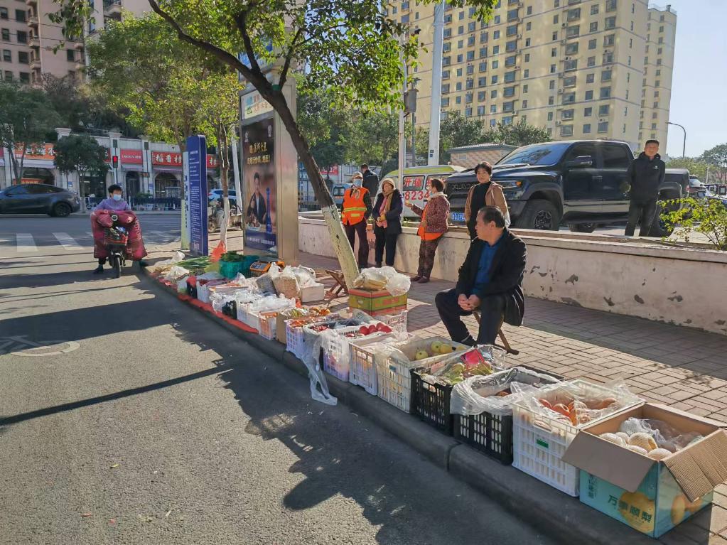 随着城乡一体化发展,一些农村居民进入城区居住,但不少人在老家仍有土地,常常会在社区临时售卖一些自家吃不完的瓜果蔬菜。还有一些菜农、果农,也会在收获季到城区售卖蔬果,乱摆摊、占道经营的问题也随之而来。