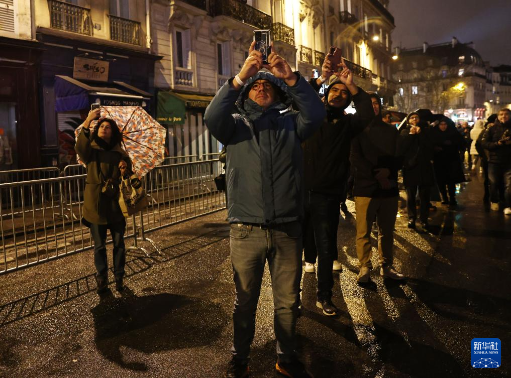 12月7日,人们冒雨聚集在法国巴黎圣母院外。新华社记者 高静 摄