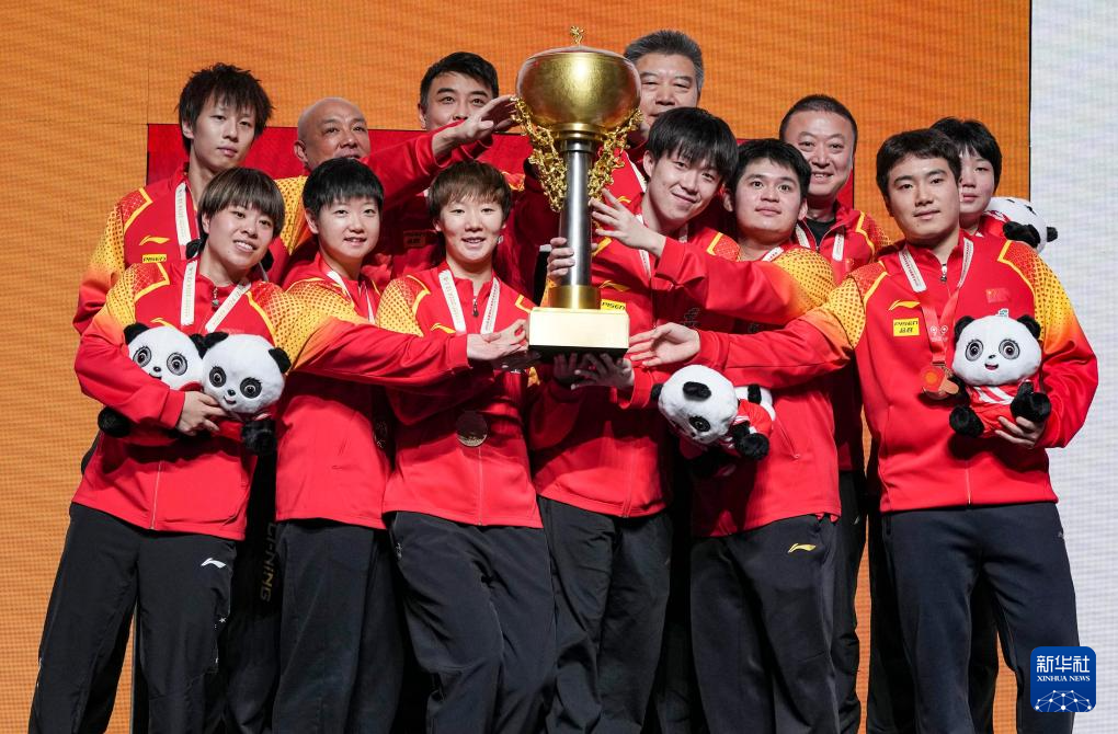 当日,在四川成都举行的2024年成都国际乒联混合团体世界杯决赛中,中国队总比分8比1战胜韩国队,获得冠军。