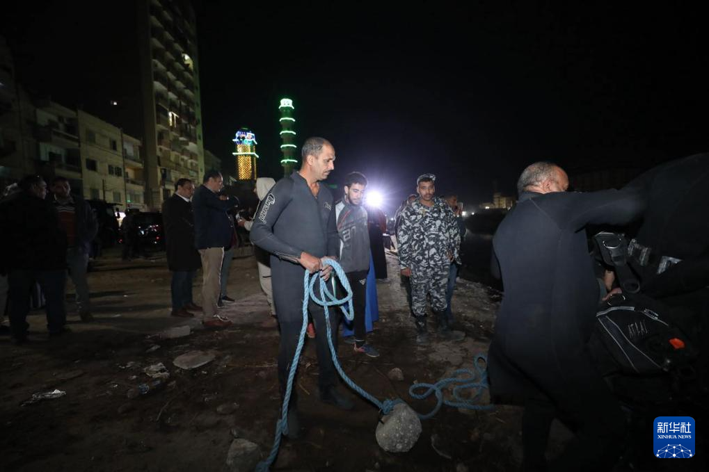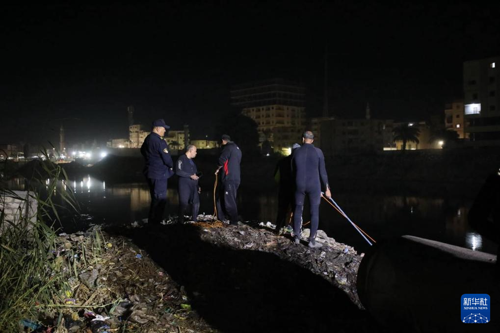 12月8日,救援人员在埃及南部艾斯尤特省的小巴车坠水事故现场救援。新华社发
