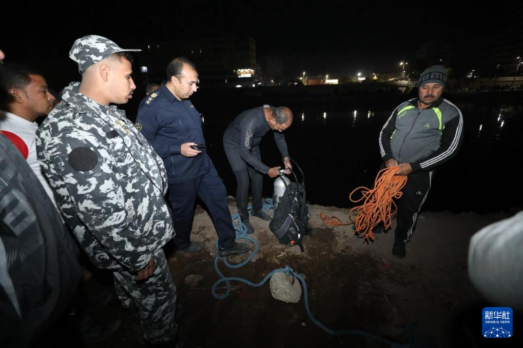 12月8日,救援人员在埃及南部艾斯尤特省的小巴车坠水事故现场准备救援。新华社发
