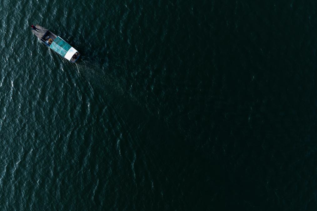 从码头出发,开船到达老杨负责的最远水域,单程便需要4个小时。老杨告诉我,前往偏远水域作业时,常常一连几天吃住都在船上。每到汛期,也就是清漂工作最为忙碌的时候,连续十几天不上岸也不是什么稀奇事。老杨倚靠在船舷,俯身用手兜起一捧水介绍,现在水质比以往好多了。