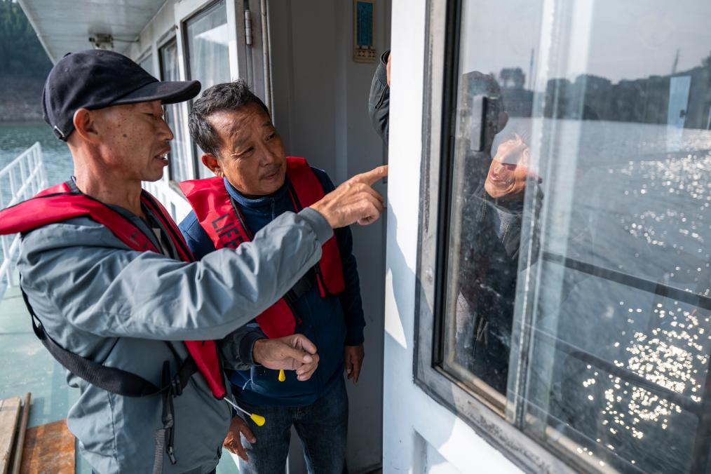 小船缓缓驶向库区深处。一路上,老杨向我讲述了他与库区的深厚渊源。和许多志愿者一样,老杨曾经也是一名渔民,靠网箱养鱼维持生计。2014年,为了南水北调中线工程的顺利推进,维护北上水质安全和供水安全,老杨和其他渔民一道,响应号召拆除网箱,告别了渔民生活。